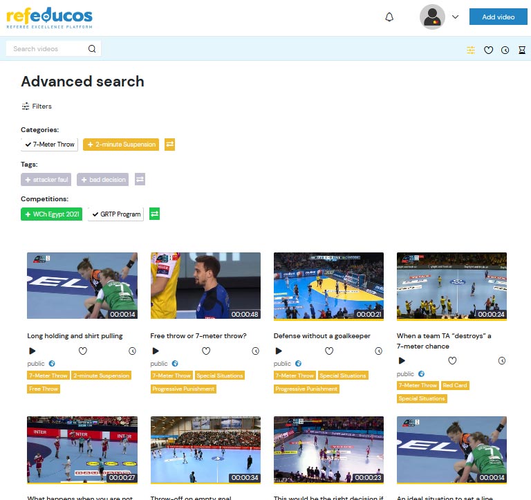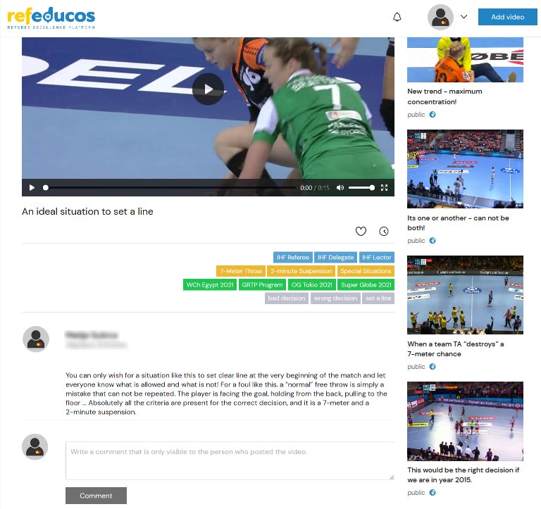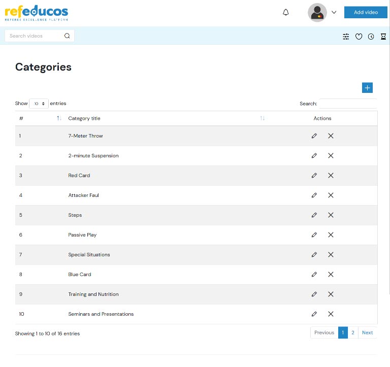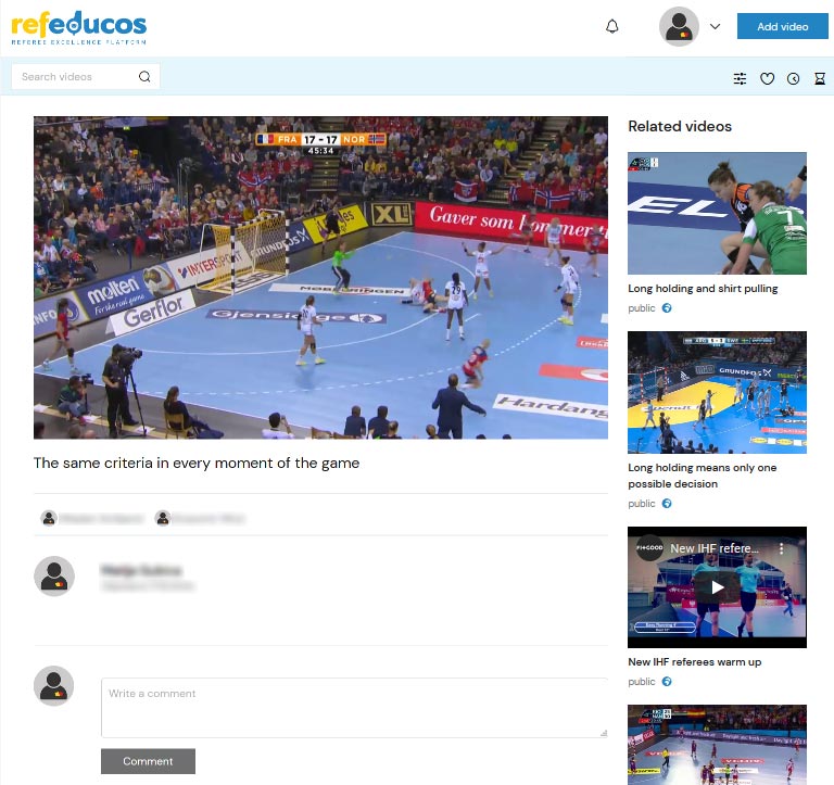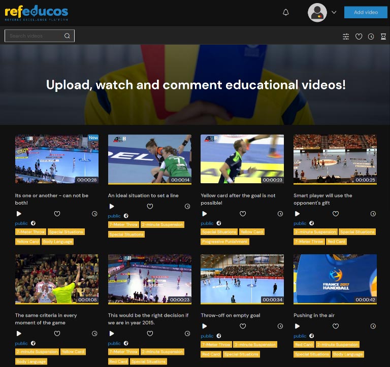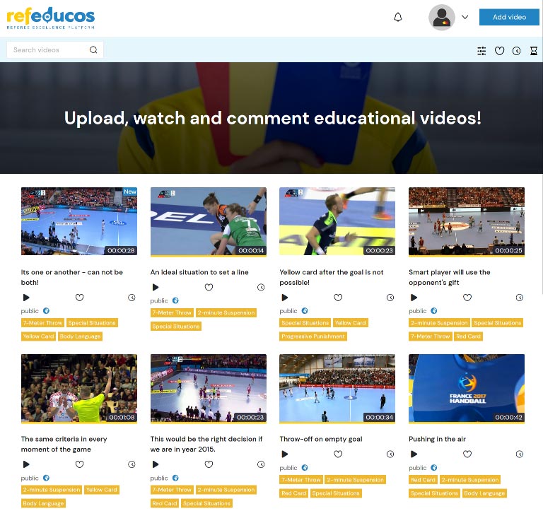 Our specialized web application is intended for educating referees through video clips.